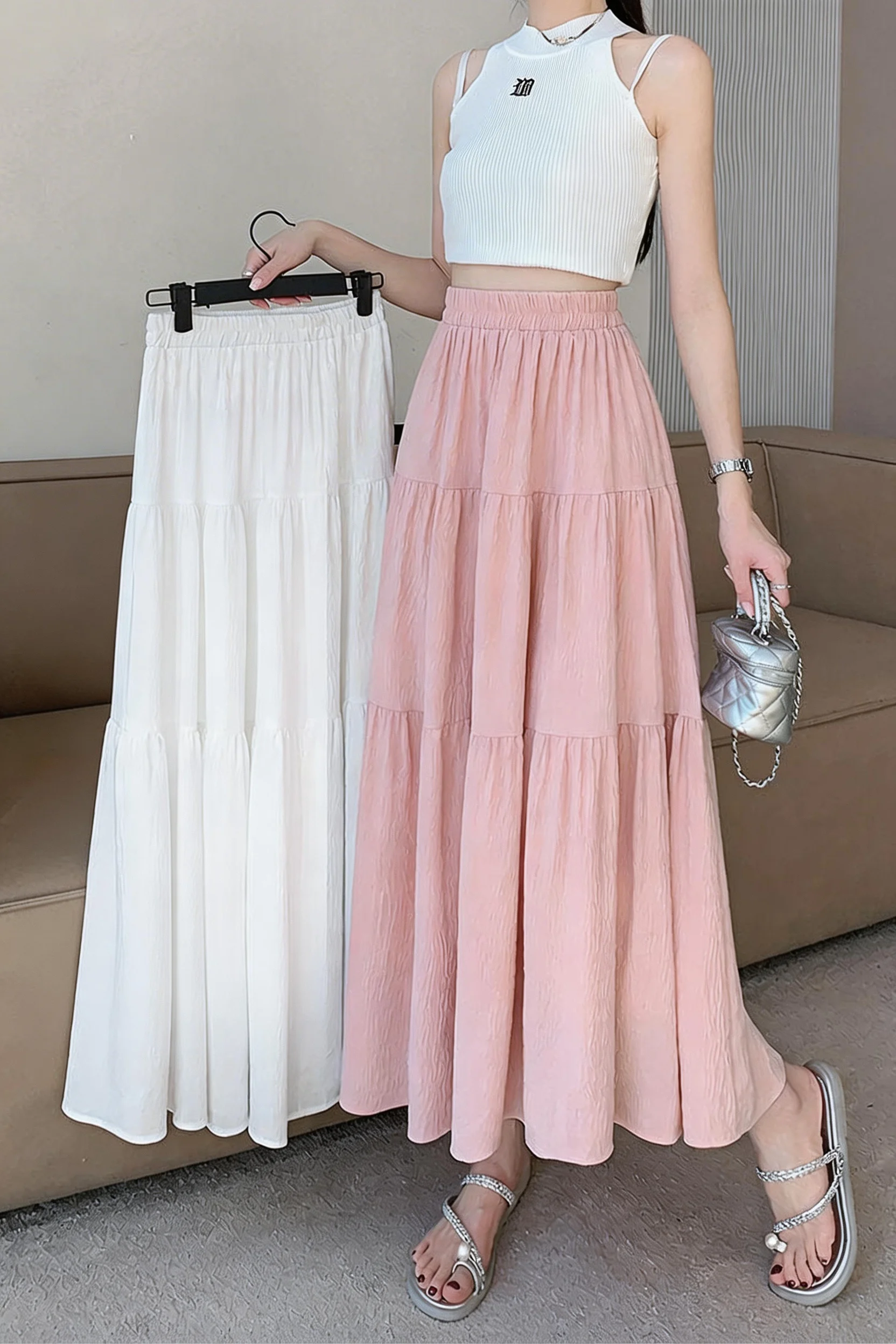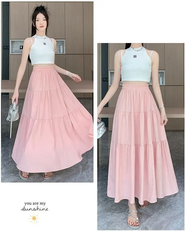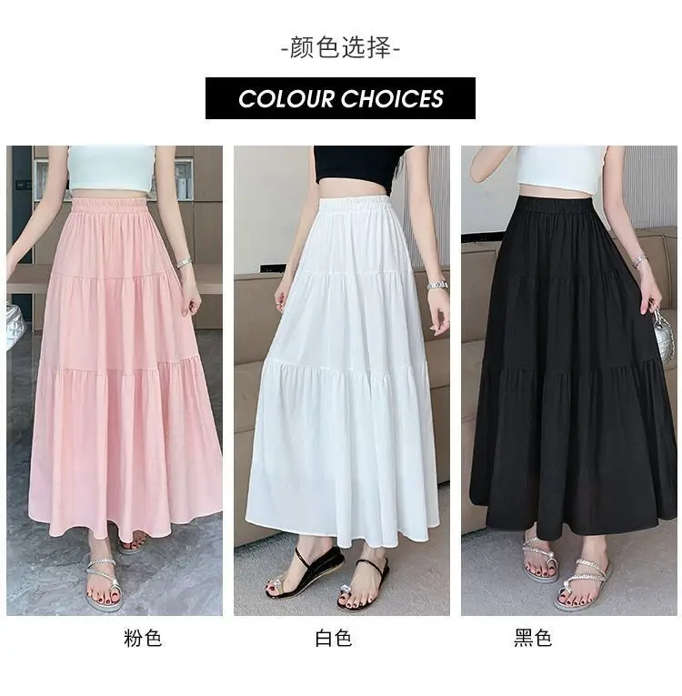 1pcs Women Skirts Girls High Waist Chic Long Cake A-line Skirt Female White Black Vintage Fashion With Lining Long Dress