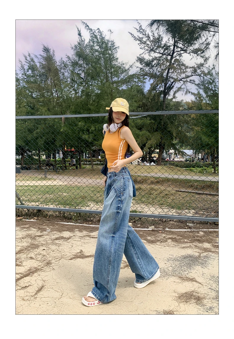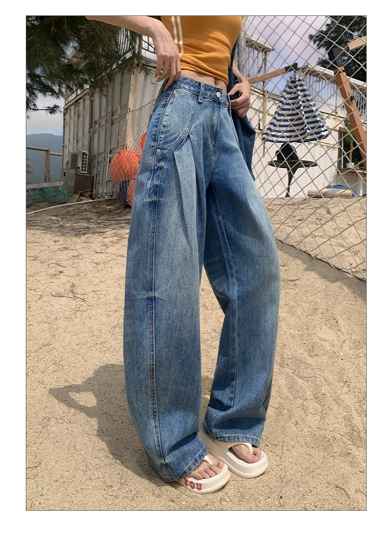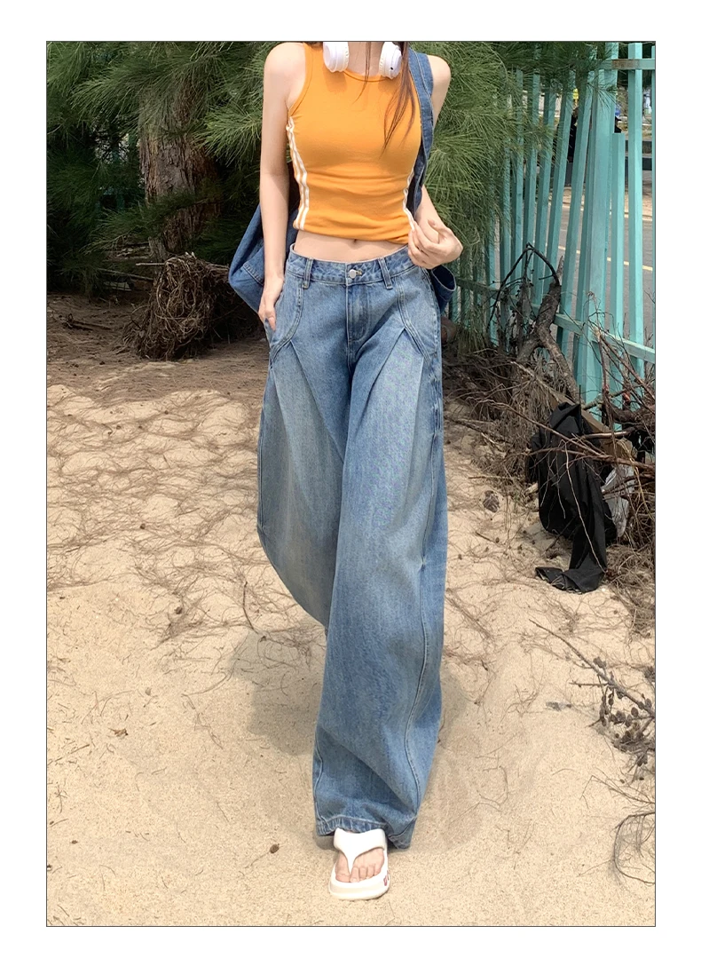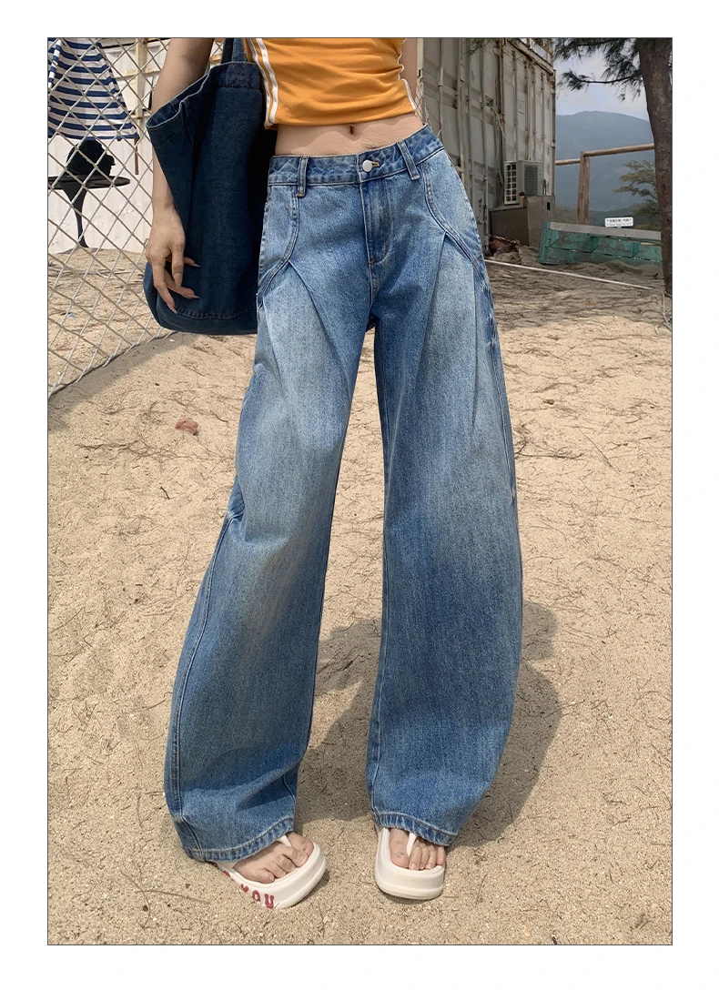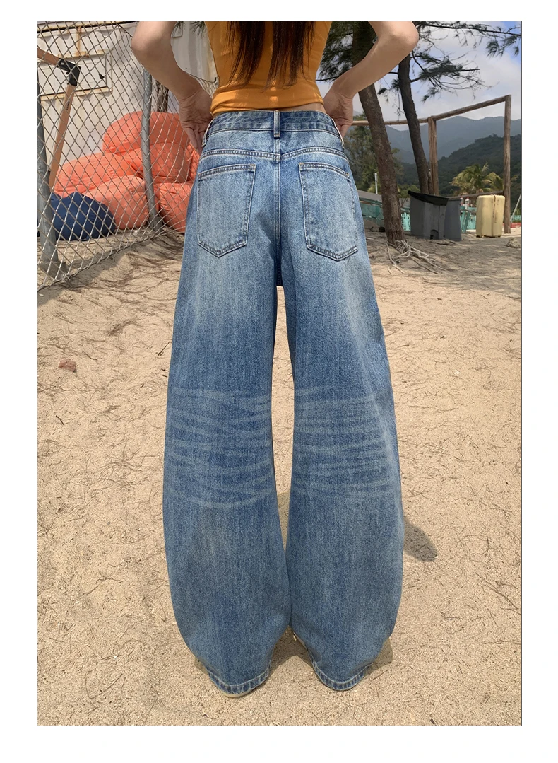 American Retro Street Style Curved Blade Loose Fit Jeans, Versatile Denim Jeans, New Spring/Summer Style, Floor-Length Pants
