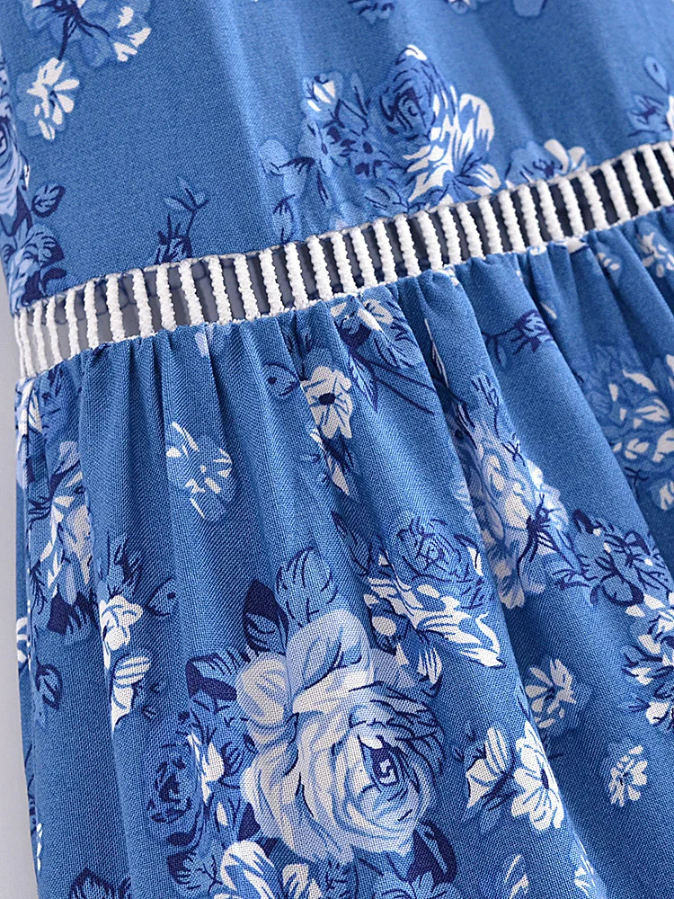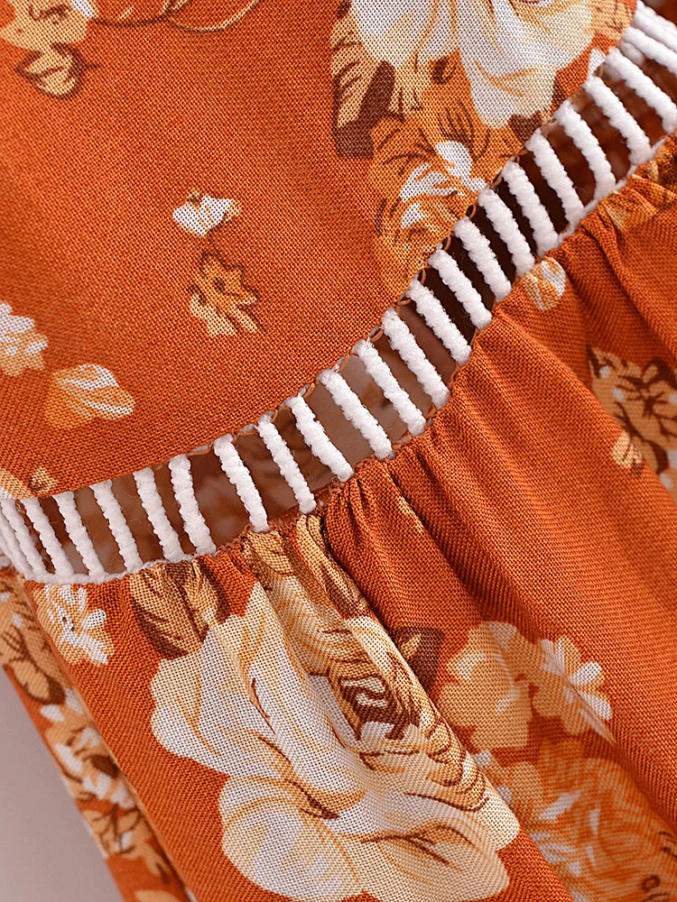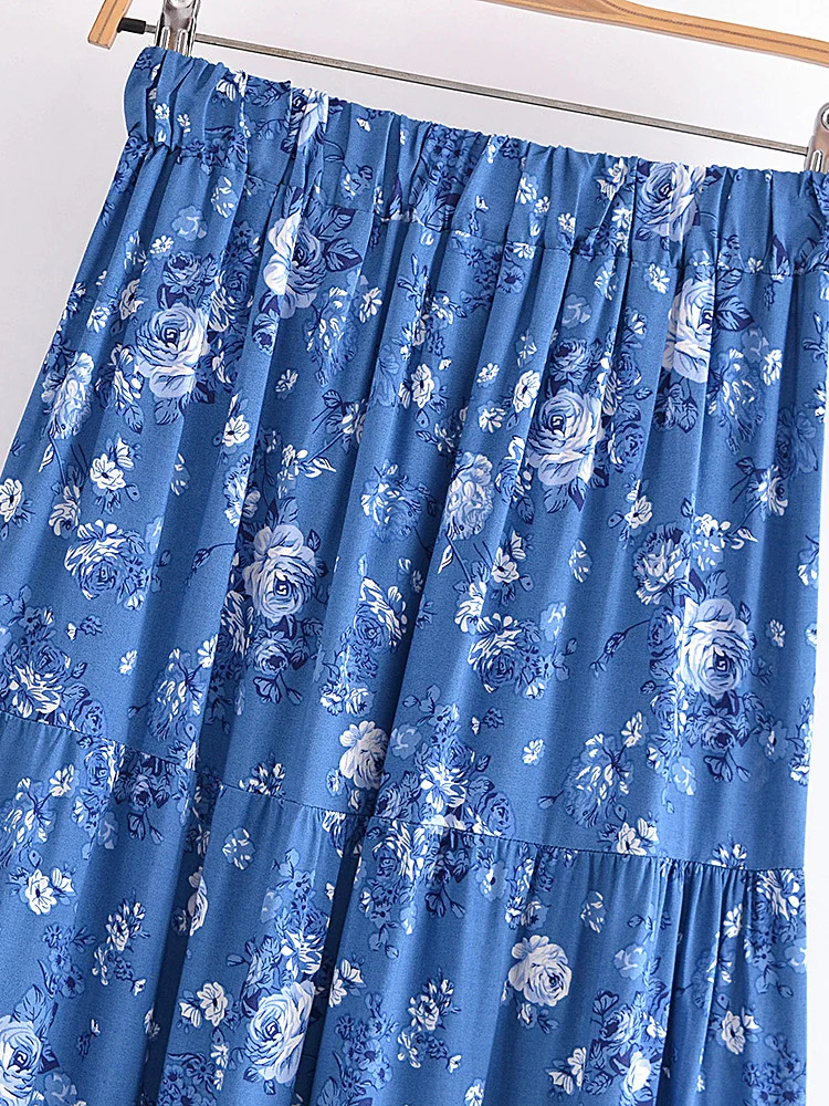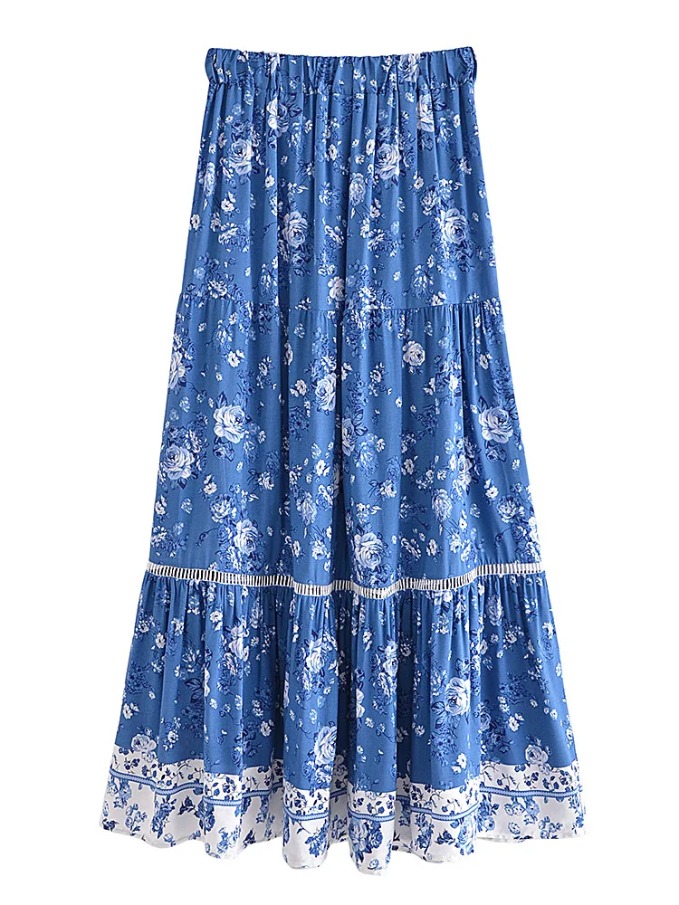 Happie Queens Women Floral Print Summer Elastic Waist Pleasted Boho Skirt Rayon Cotton Bohemian Beach A-line Maxi Skirts