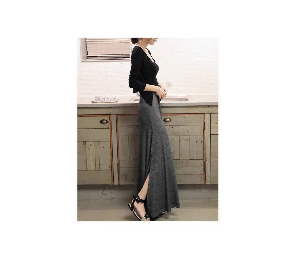 Women's Plus Size High Waist A-Line Long Skirt Japanese Korean Style Side Slit Bodycon Flared Swing Skirt